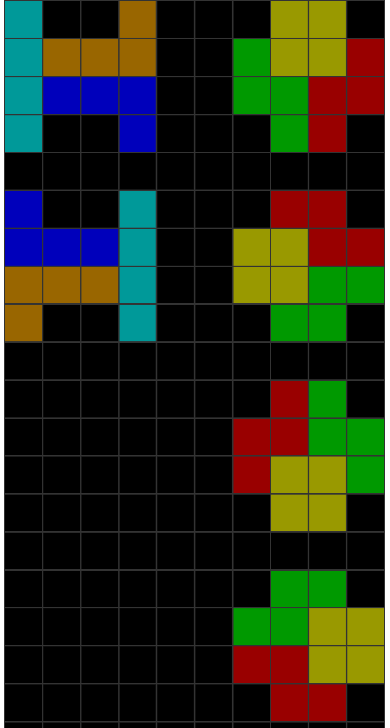 2巡目はこのように確定で2ライン消しを行えます。 3巡目以降は奇数巡目は1巡目と同じ積み方、偶数巡目は2巡目と同じ積み方で16巡目まで確定で積めます。